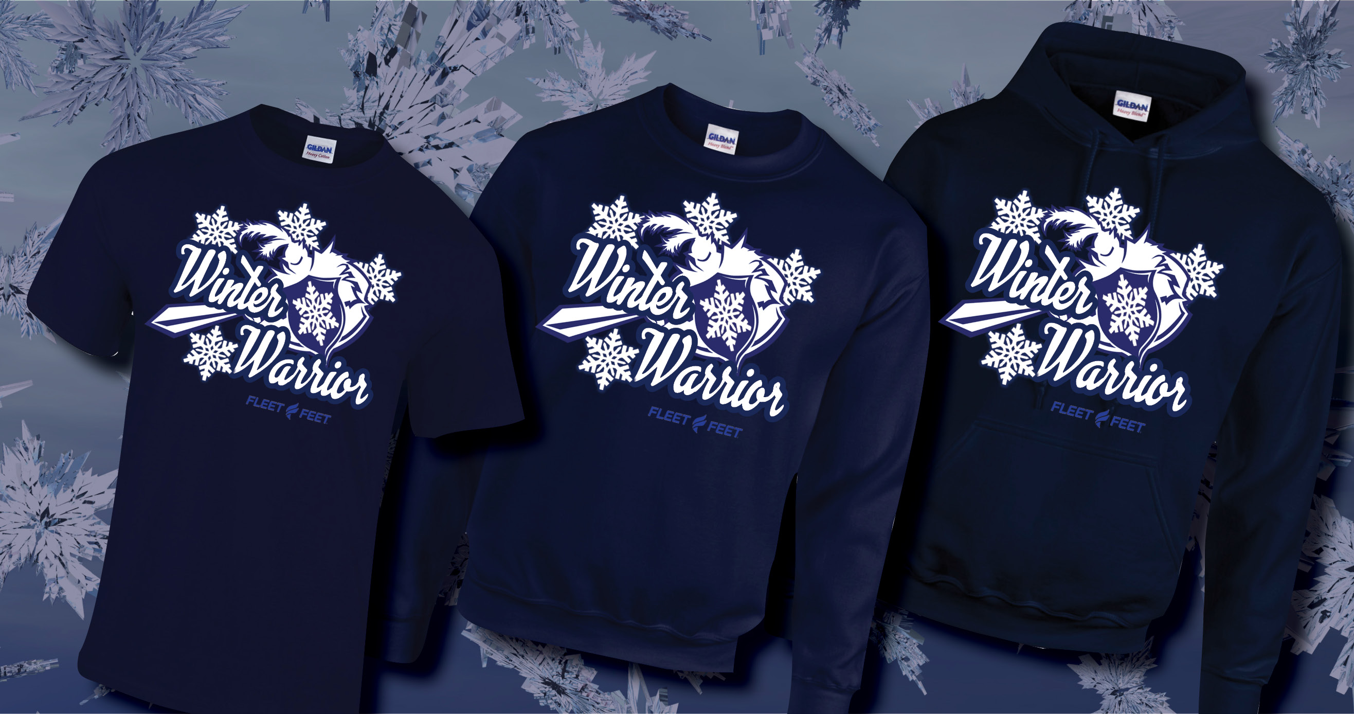 The Optional Winter Warrior Short Sleeve Tech Top ($30), Crewneck or Hoodie ($32 - offer ends Dec 14th) - Depicted Above. Yes you can choose between all 6 of these choices, the navy with white print version or the white with the navy print version.